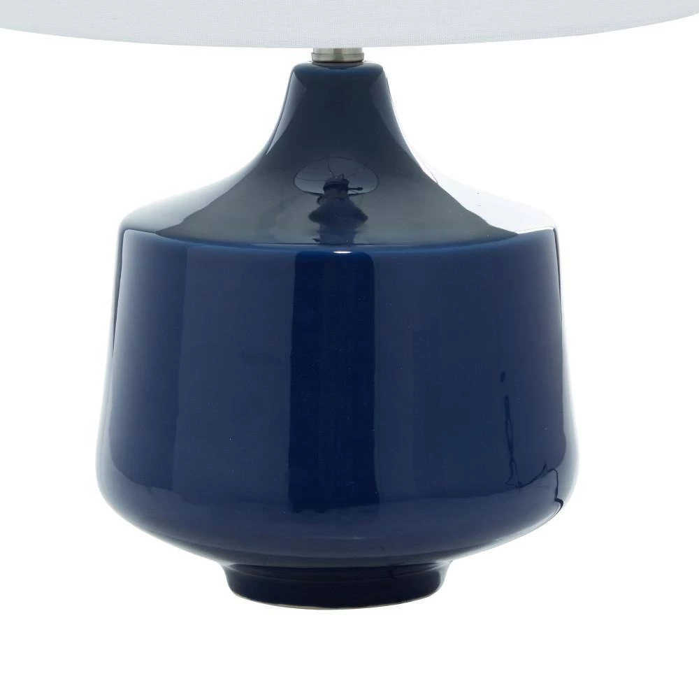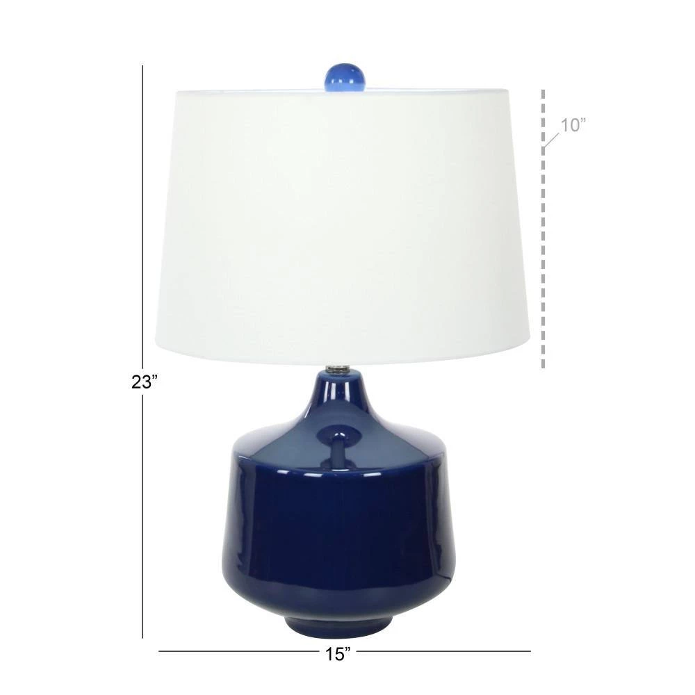 - These blue lamps are made of a solid porcelain body with linen drum shade