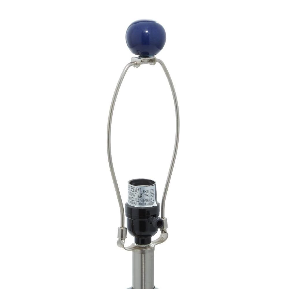 - This table set lamp features smooth blue finish with white shade