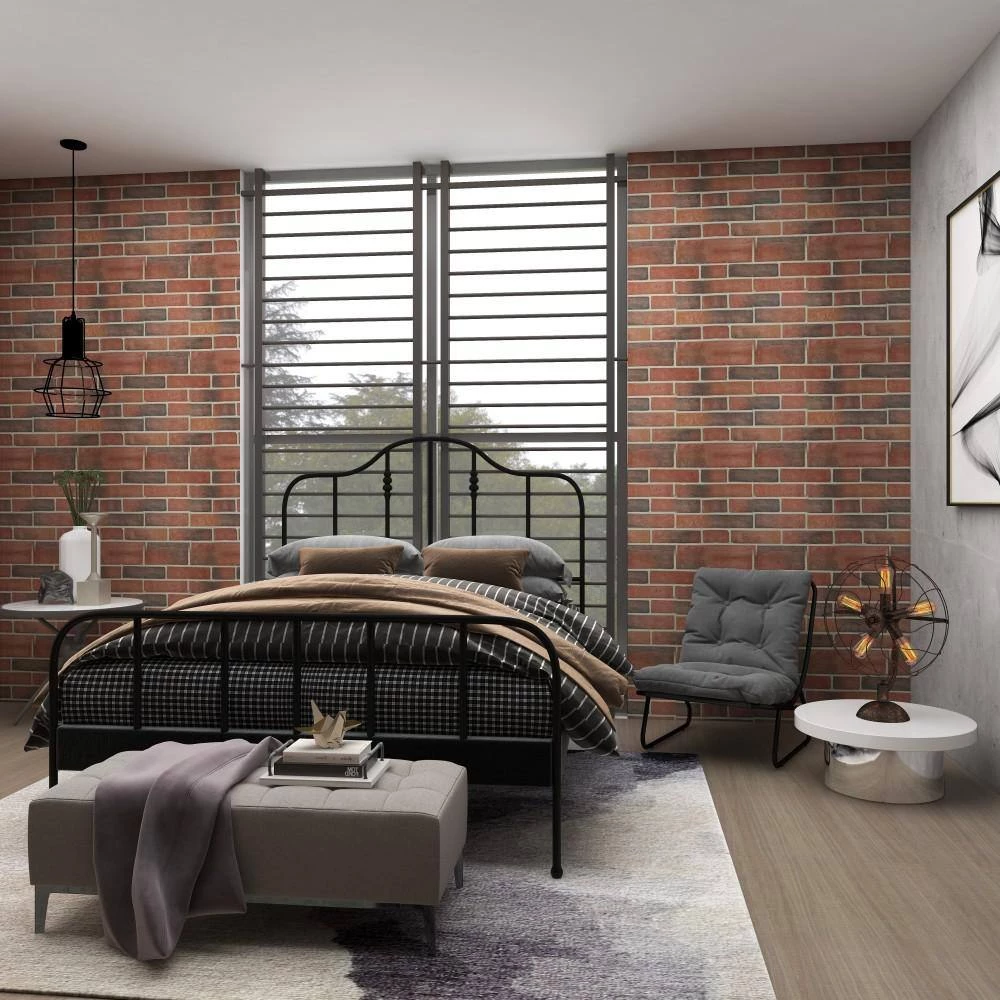 - This fan-shaped accent lamp has a distressed black finish that pairs well with an industrial theme