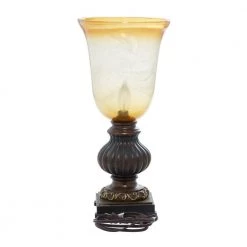 Brighten up any room to create a warming atmosphere for you and your guests with this chic table lamp. The frame is made of distressed black iron, which has been curved to create an elegant pattern with an industrial aesthetic. Our rugged accent lamp can add plenty of light and character to an industrial-themed office, study, or living room. Designed with black rubber stoppers at the base that prevent scratching furniture and table tops, as well as sliding around. Industrial accent lamp that uses five Edison 60-watt bulbs. Bulbs not included. This item ships in 1 carton. An industrial accent lamp that has a 75″ cord. Suitable for indoor use only. Features metal shade structure that take shape of a classic fan. Comes with an on/off switch. Industrial Inspired.