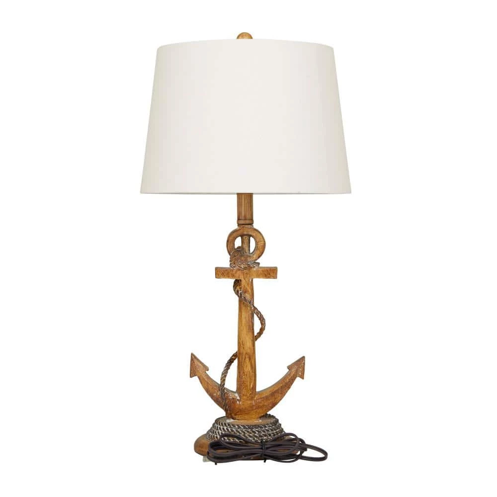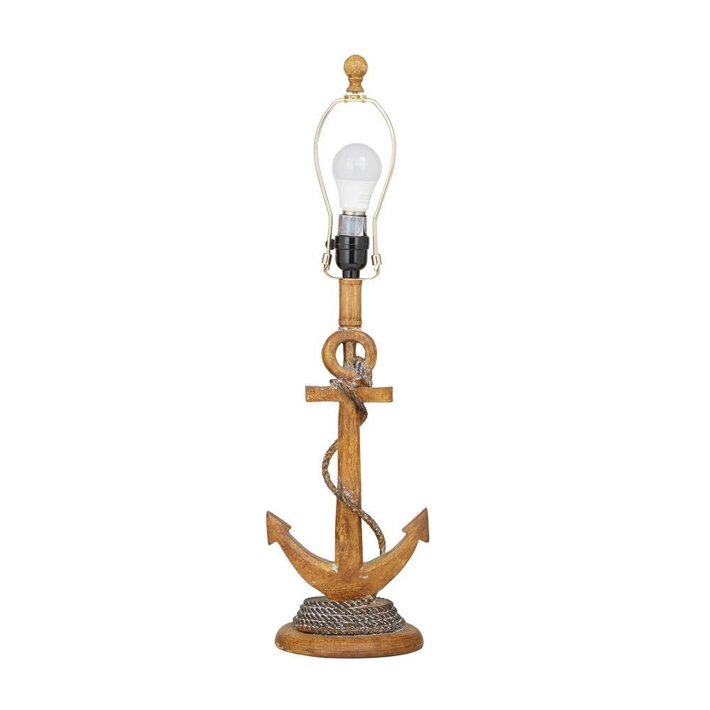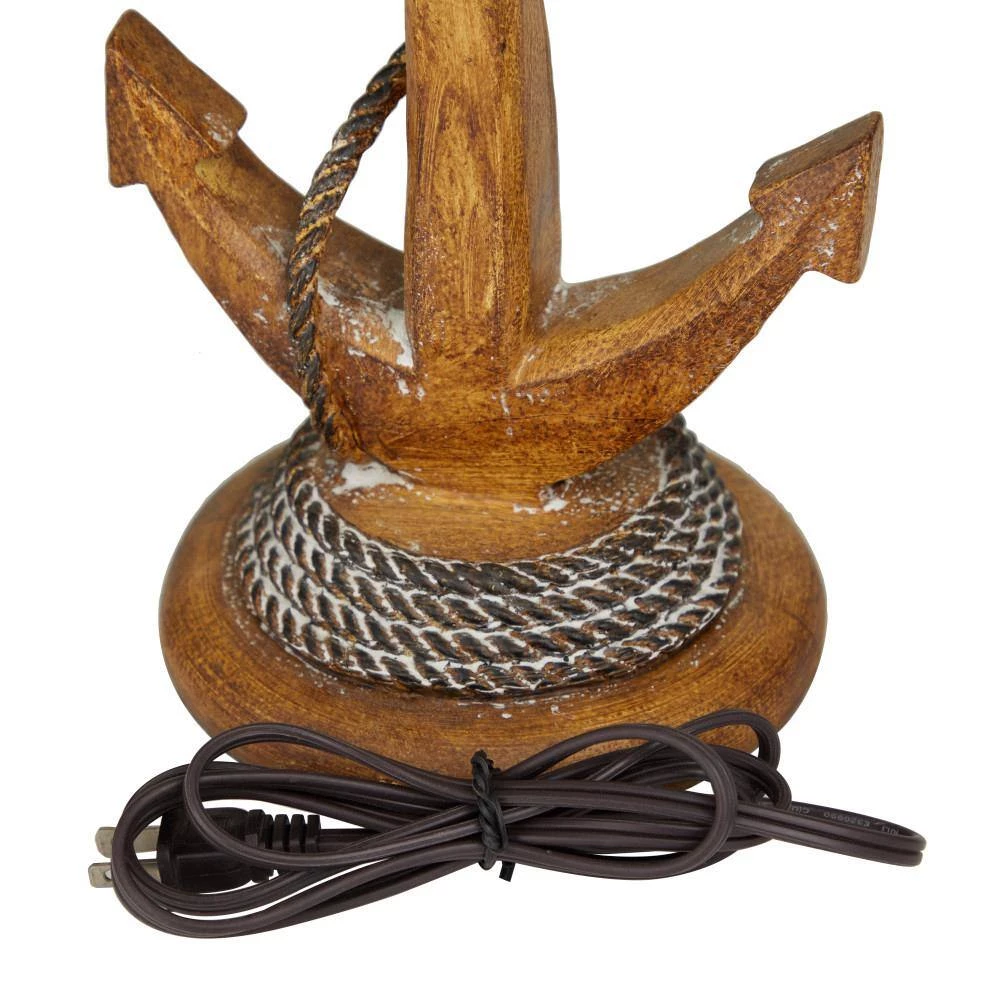 - Decorative table lamp with brown anchor body, gray rope detail, and white lamp shade