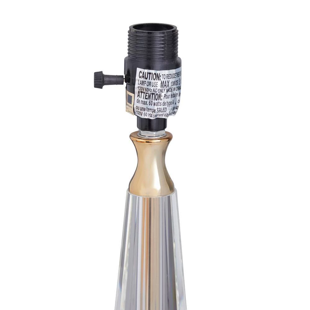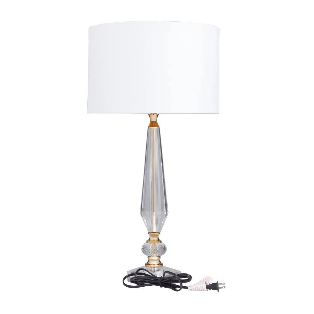 - Crystal acrylic glass with gold frame flaunts the pillar base of this table lamp