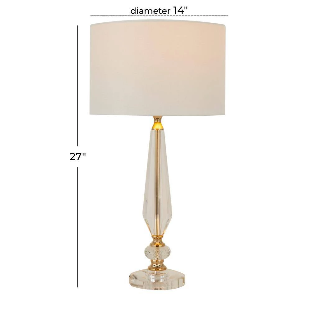 Add calm and soft lighting to your side or end tables with this buffet lamp with acrylic crystal base stand for a hint of elegance in your home corners. A practical yet stylish upgrade that instantly elevate the look of your room. Brighten up darker spaces in your home with this chic slender buffet lamp. Furnished with a socket for a medium-sized E26 bulb . This item comes shipped in one carton. Suitable for indoor use only. This item carries a drum shape linen shade. It conveniently turns on and off via a toggle switch. Traditional design. The cord is 66 inches.