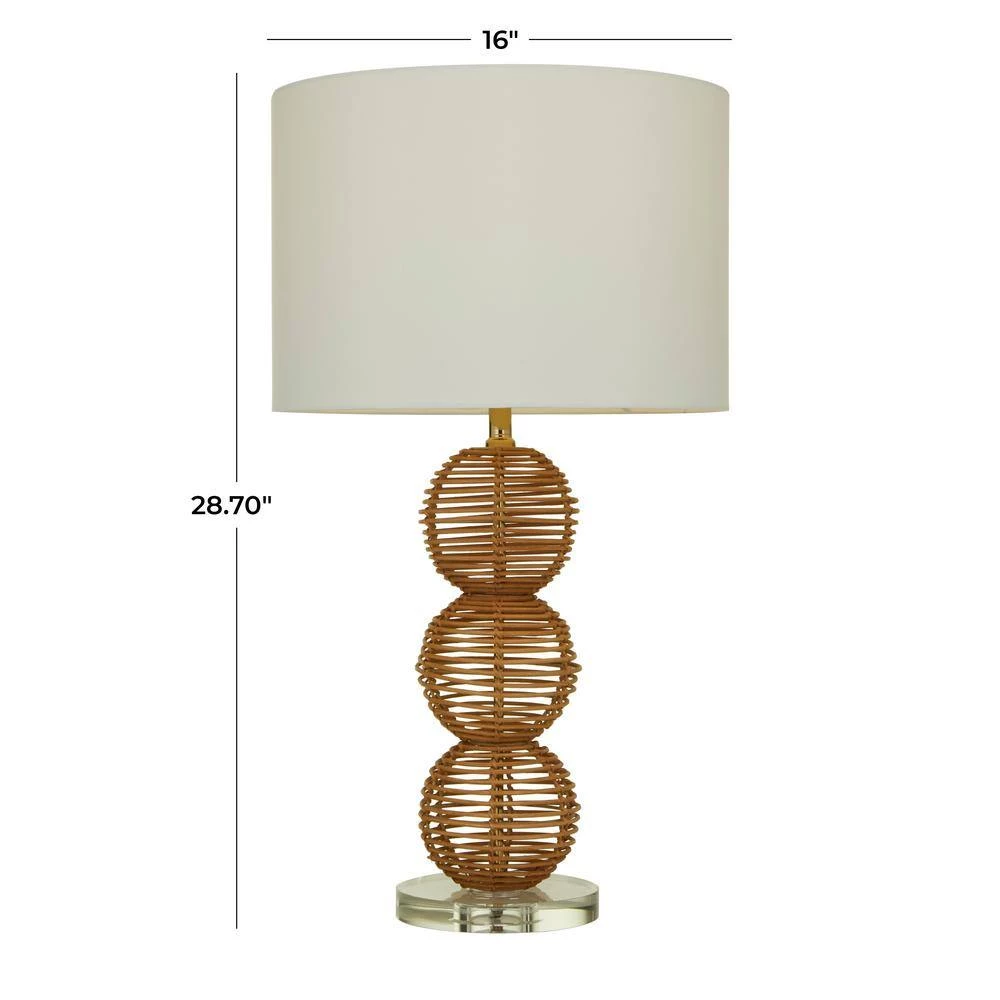This eye catching lamp makes a charming and chic addition to your surface space and beautifully illuminate its surrounding area. Bring a finishing touch to your home with an inviting appeal with this accent table lamp. The round structure of this palm tree wooden lamp will surely add a natural vibe to any room and can blend a bohemian flair with your existing home style. Comes with 1 socket for medium-sized E26 bulb included this item ships in 1-carton. Cord length measures approximately 60 in. suitable for indoor use only. An accent piece featuring a white drum-shaped shade. Power cord on/off toggle switch. Bohemian Setting.