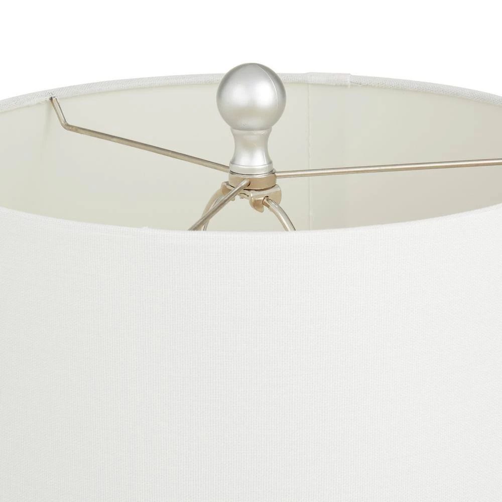 - A glam style bedside table lamp crafted of solid linen and polystone materials