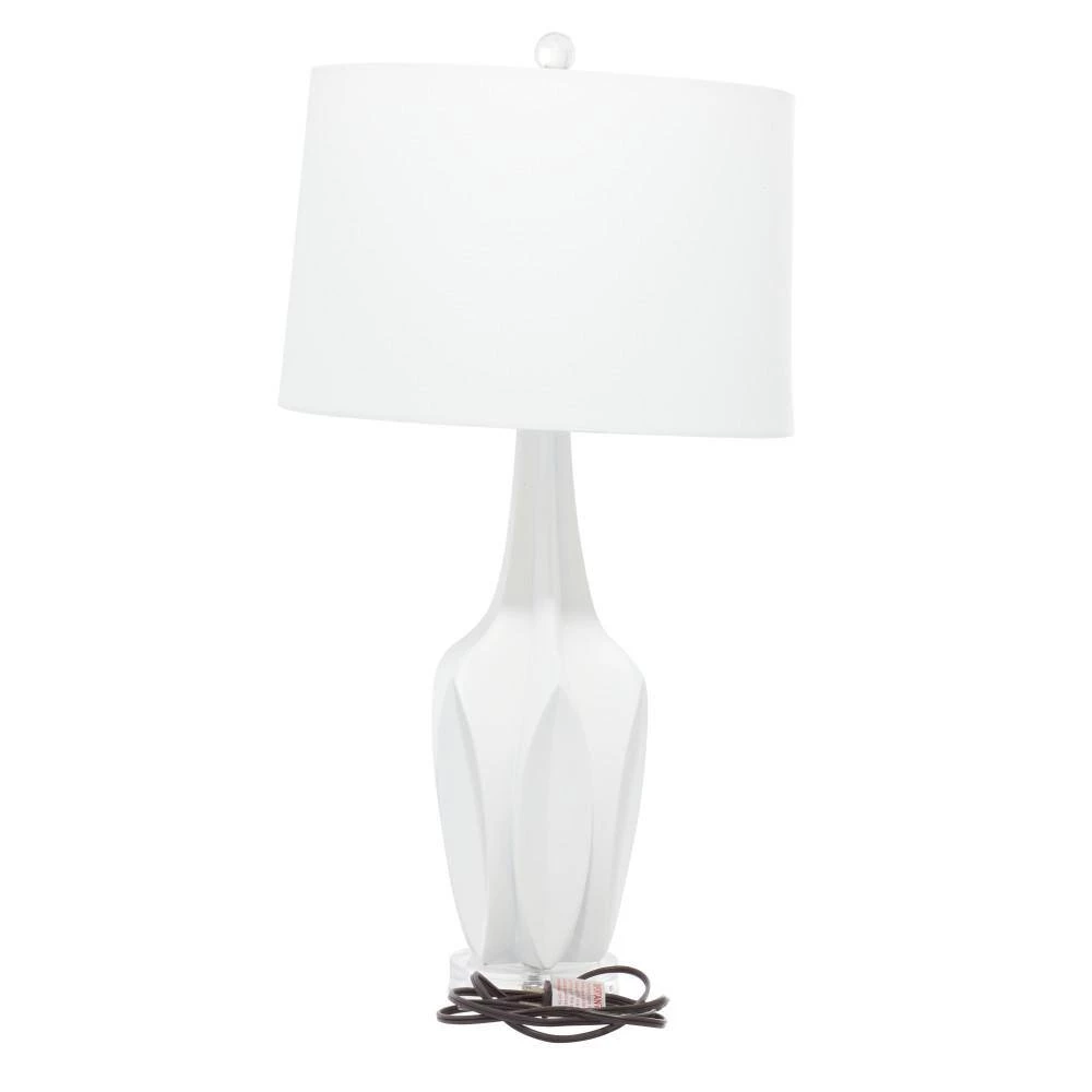 - Modern lamp with a drum lamp shade and dimensional vertical grooved base