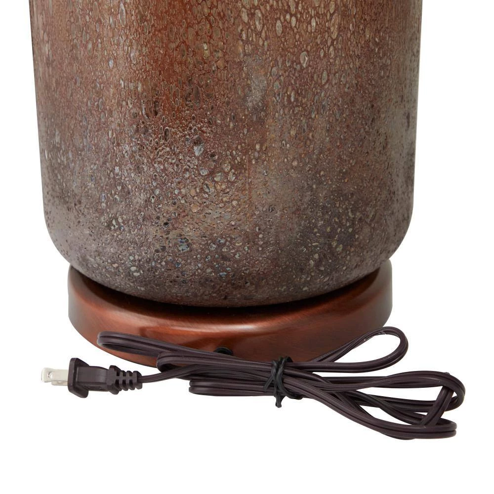 This eye catching lamp makes a charming and chic addition to your surface space and beautifully illuminate its surrounding area. Bring a finishing touch to your home with an inviting appeal with this accent table lamp. An ombre brown glass table lamp that brings charm and a modern appeal to any room for an instant decor upgrade. Designed with black stopper at the base that prevent sliding around as well as scratching any surface. Comes with 1 socket for medium-sized E26 bulb. Bulb included. This item ships in 1 carton. Cord length measures approximately 60 in. Suitable for indoor use only. An accent piece featuring a white round-shaped shade. Power cord on/off toggle switch. Modern Inspired.