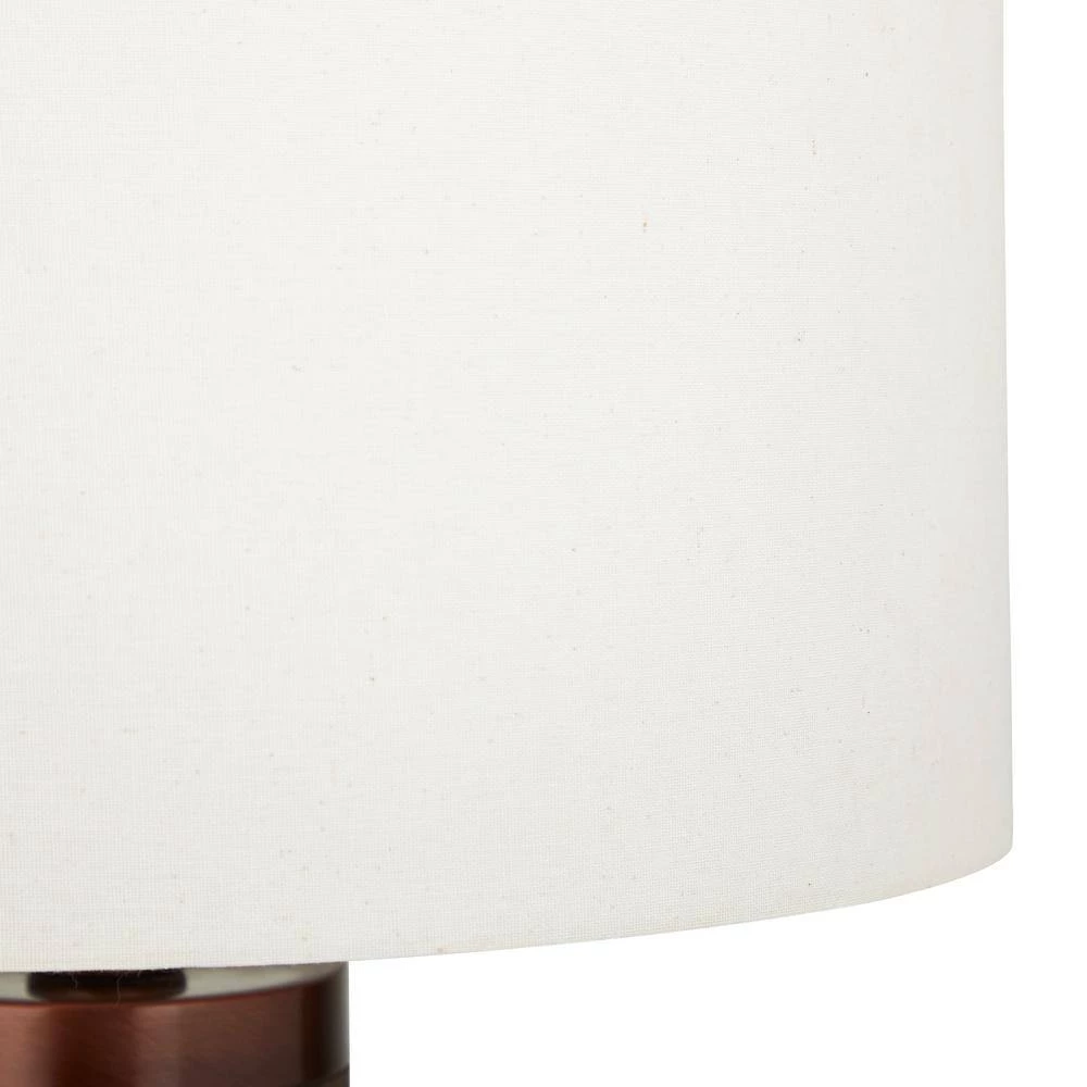 - Round fabric shade of this accent lamp is securely mounted on the glass body