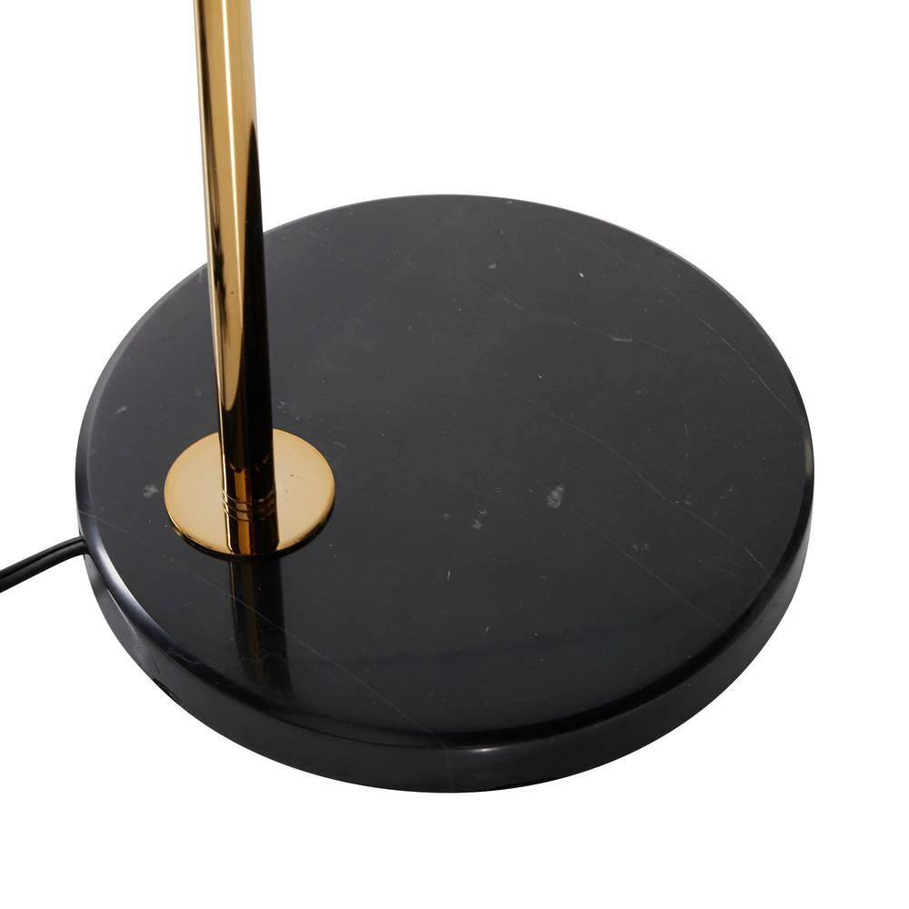 - This transitional floor lamp is constructed from a metal rod shaped into a curved design and mounted to a marble base