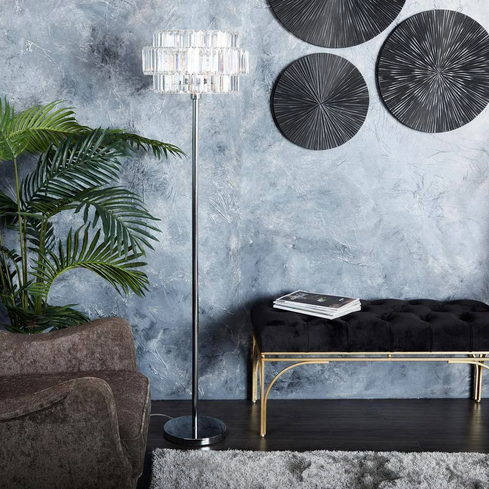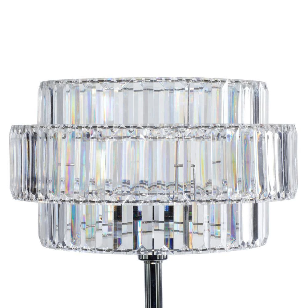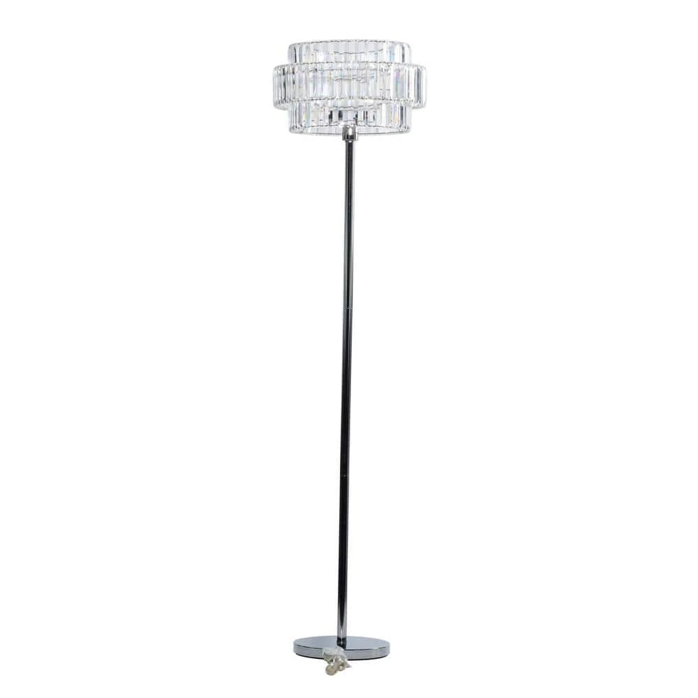 - Dazzling tiered acrylic glass shade embellish this floor lamp that complements its silver base for a chic and elegant style