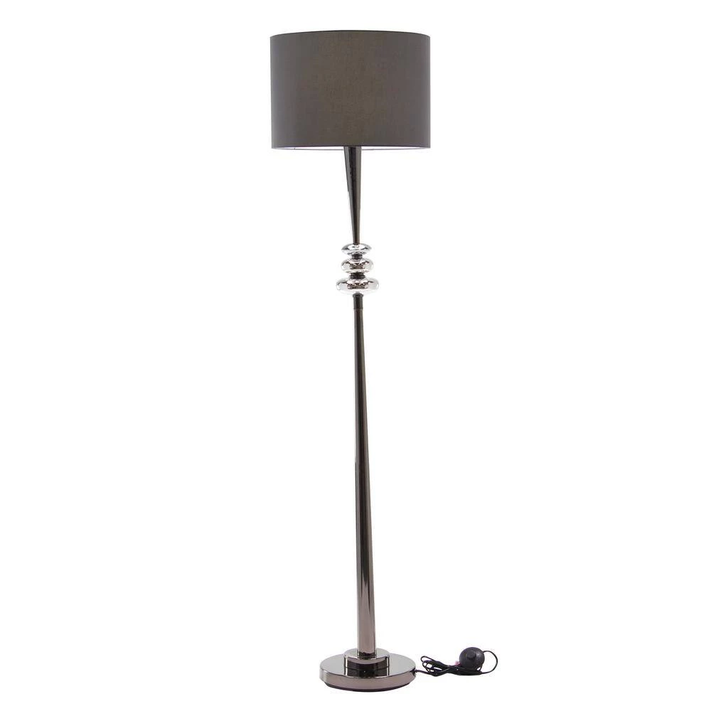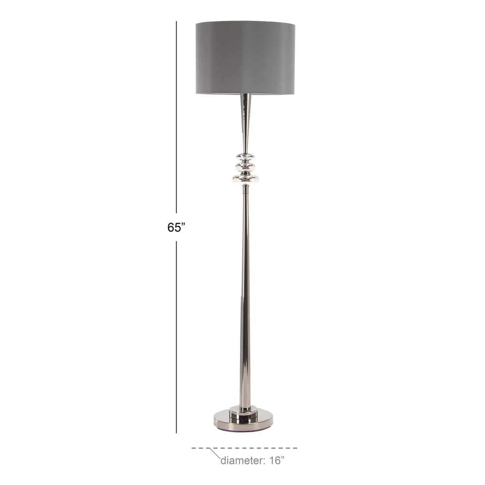 Brighten up any room to create a warming atmosphere for you and your guests with this chic floor lamp. Make a statement with this unique floor lamp on any surface space for a balanced look. Display this stylish accent lamp in your living room for a sleek, modern look with warm, ambient lighting. Designed with black rubber stoppers at the base that prevent scratching furniture and table tops, as well as sliding around. Uses one standard E26 light bulb (not included). This item ships in 1 carton. This item has a 75″ cord length. Easily goes with neutral and vanilla-toned walls and other home decor. Suitable for indoor use only. A drum shaped shade made of fabric. Convenient foot switch for easy on/off. Glam inspired.