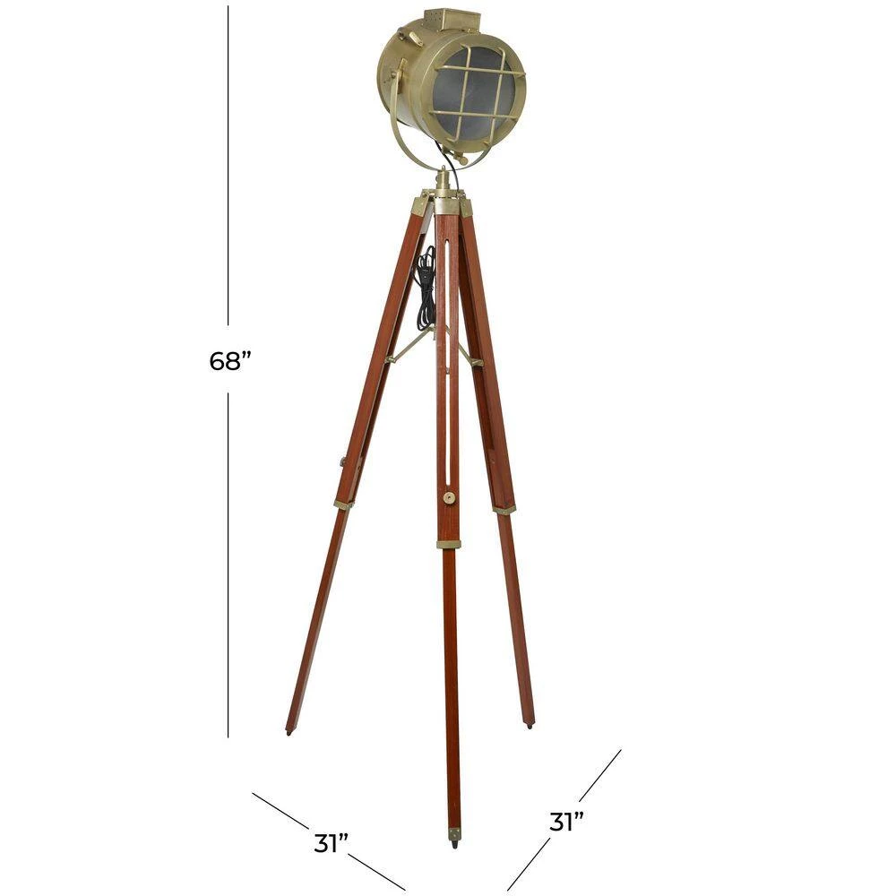Stainless steel floor lamp features a combination of classic and mod versatile style for your living room space. Designed with rubber stoppers at the base that prevent scratching furniture and table tops, as well as sliding around. Comes with 1 socket for medium-sized E26 bulbs. Bulbs not included. This item ships in 1 carton. Suitable for indoor use only. Tall tripod floor lamp has a round stainless steel spotlight style shade. Tripod floor lamp has an on and off button switch. Made in India. Vintage style.