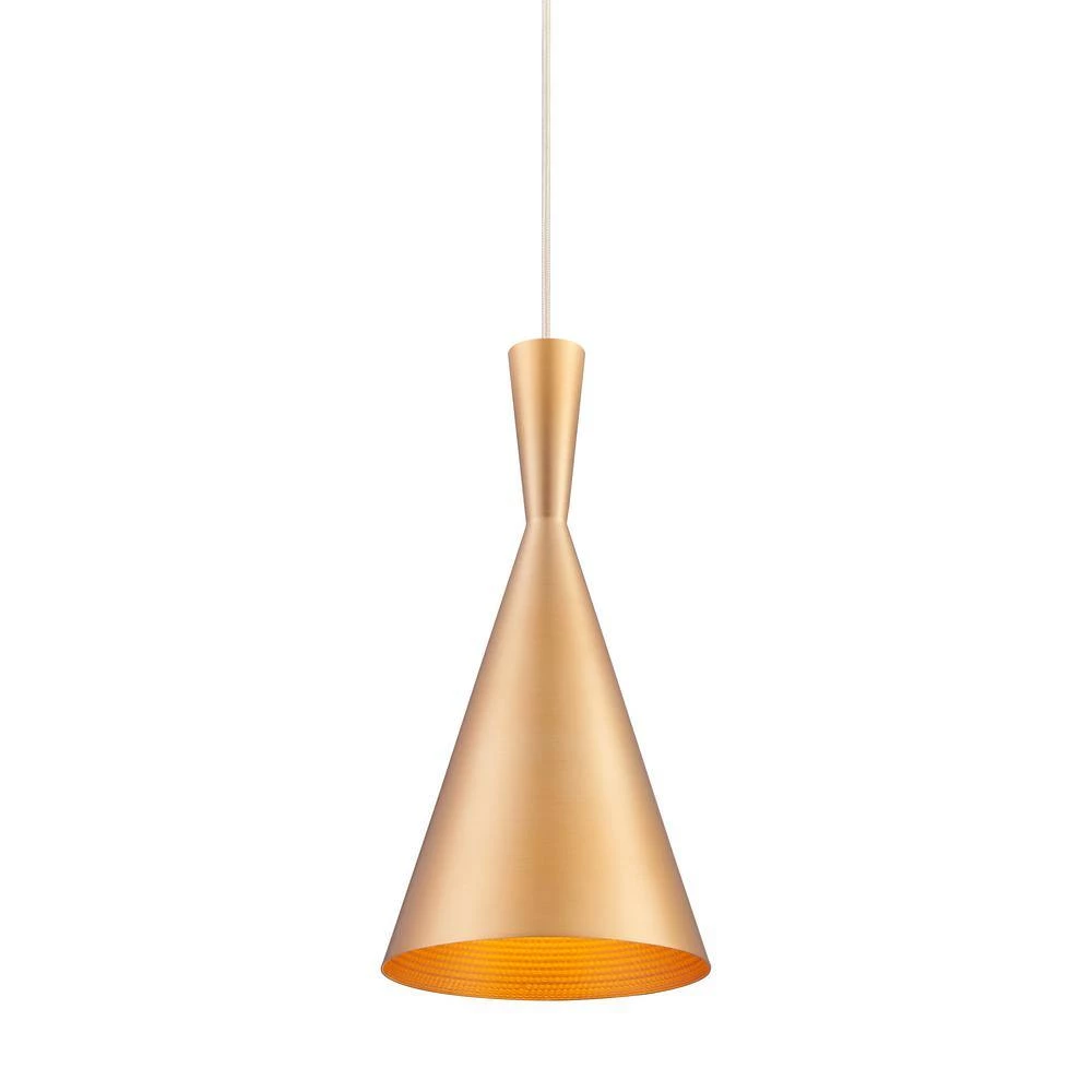 The gold finish of this retro-styled pendant gives a retro Euro feel. This light goes well in any room looking for a ultra cool contemporary feel. A contemporary feel for any home.