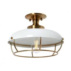 - Farmhouse-inspired outdoor light showcases a metal shade on an industrial style wall mount wet location (direct water exposure)