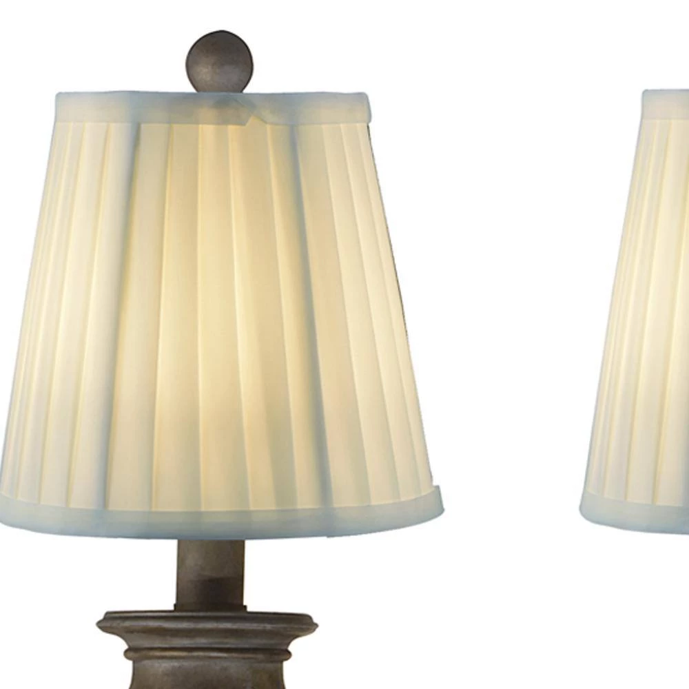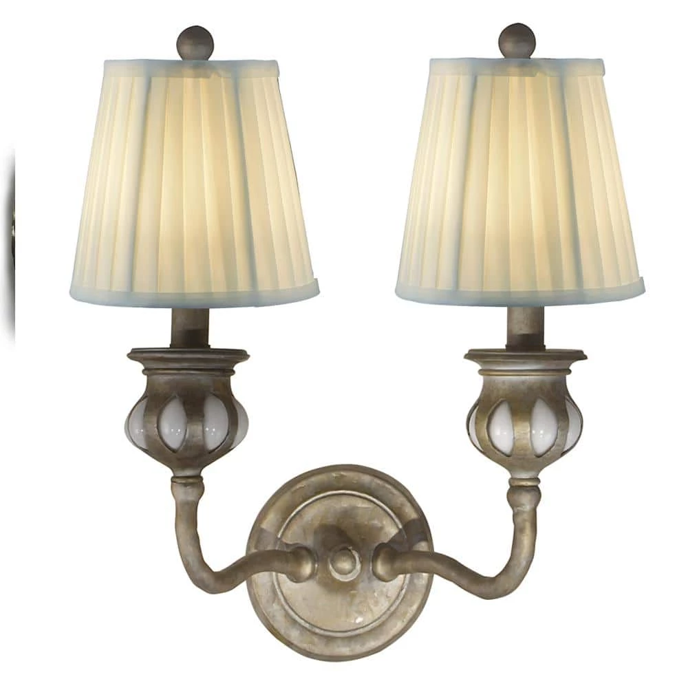 Our lovely Evita 2 LT Wall Sconce features vintage styling with a contemporary twist to ensure it will be the ideal addition to any decor. The sconce’s base and circular backing plate are crafted of bronze that is finished in burnished Antique Bronze. A pair of graceful wall arms extend outward from the backing plate, each extending upward to end in a round candle cup with glass insets. We topped each with a pleated fabric shade and matching finial. A great solution for powder rooms or other smaller spaces, try displaying our Evita 2 LT Wall Sconce in multiples around the perimeter of a larger room for a whole room lighting solution you will proudly display for years to come.