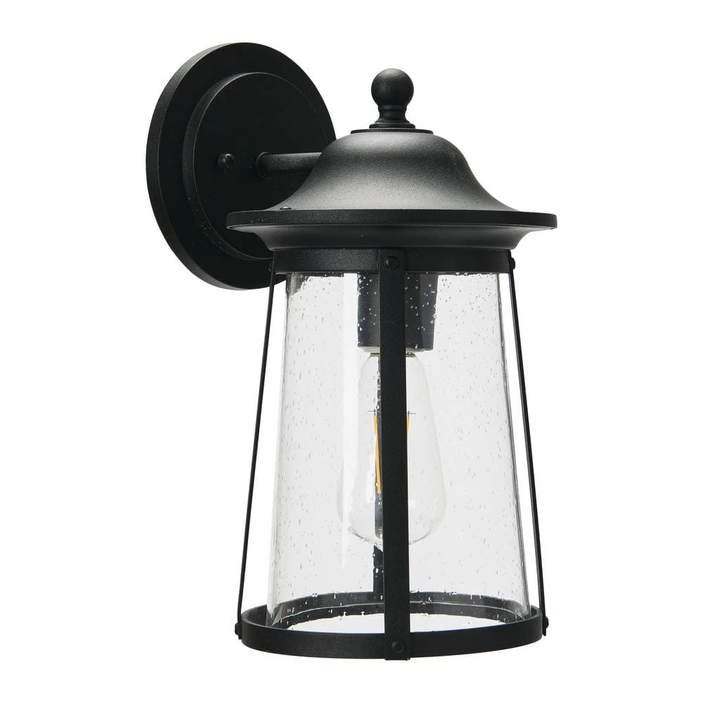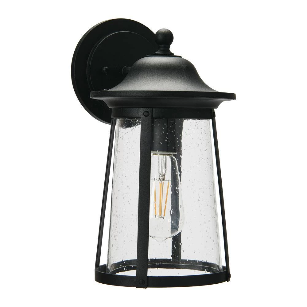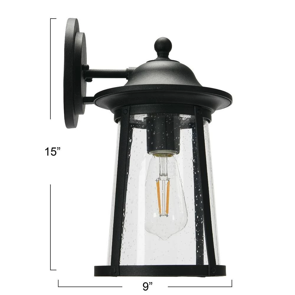 - Metal and seedy bubble glass outdoor light in a matte black finish