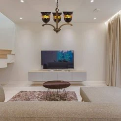 Shell 3-Light Antique Golden Bronze Chandelier with Mosaic Art Glass by Springdale Lighting