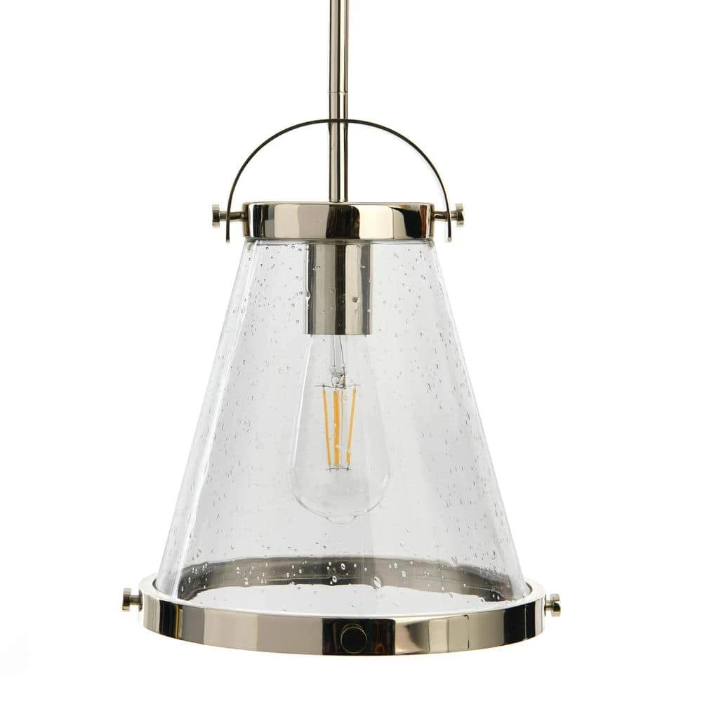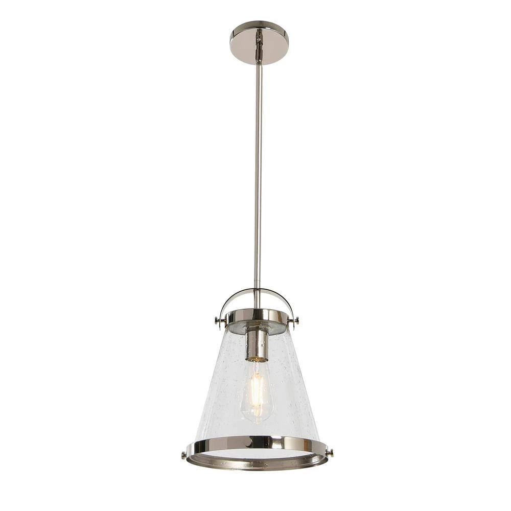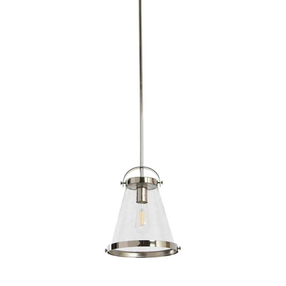 Inspired by vintage cast glass fixtures, the Wesley collection boasts rich textural contrast that exudes a unique industrial elegance. The delicate seedy glass shade is suspended in a spare geometric frame that casts a rich, lustrous glow. Hang in a dining room, kitchen, or living area for the ultimate combination of style and warmth.
